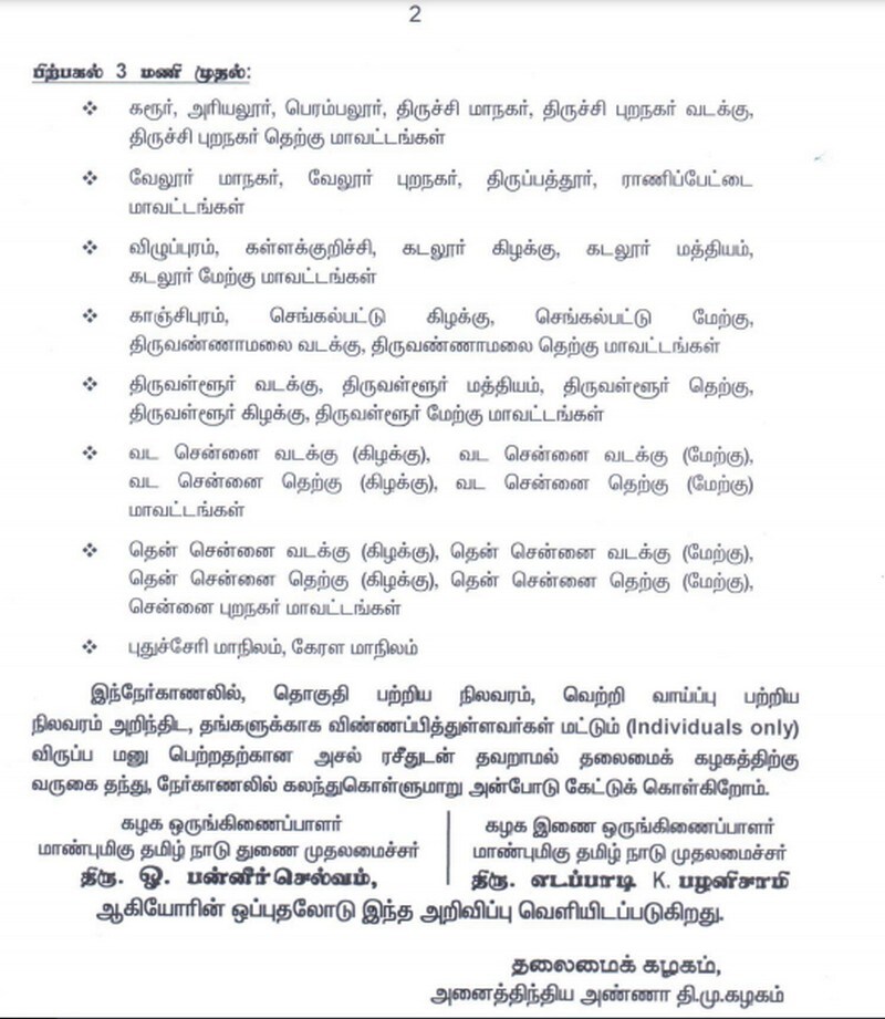 5 ஆம் தேதிவரை அதிமுக விருப்பமனு தாக்கல் செய்யலாம் என அறிவிக்கப்பட்டிருந்த நிலையில், இன்றுடன் நிறைவடைவதாக அதிமுக தலைமை கழகம் நேற்று அறிவித்துள்ளது.